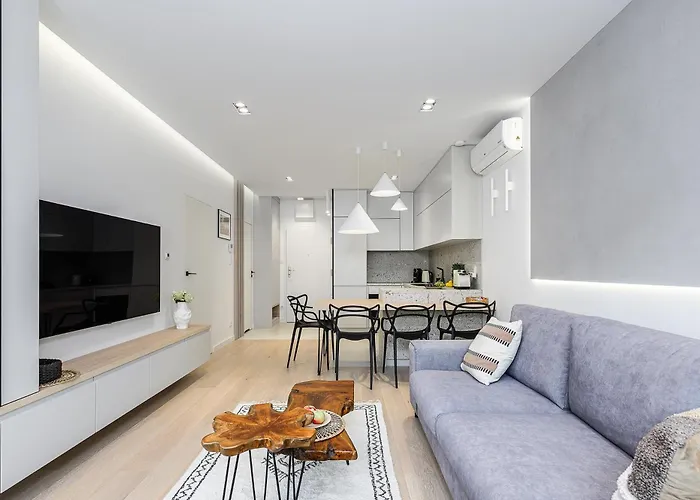 Shortstaypoland Dzielna Premium P5 apartment has an equipped kitchenette including an oven and a dishwasher. The closest bus stop is Bellottiego 02, which is 350 metres away. This accommodation features a patio on which guests can unwind.